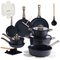 - COMPLETE SET: 22-Piece Cookware Set Includes frying pans (6.3”, 8”, 11”), saucepans (1.9QT, 3.8QT), casseroles (2.3QT, 6QT), 10 Crape Pan, glass lids, silicone utensils, spoon rest & 7 pan protectors.