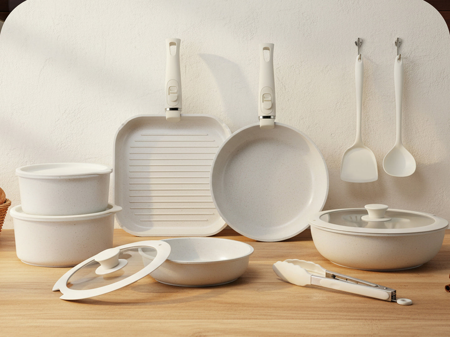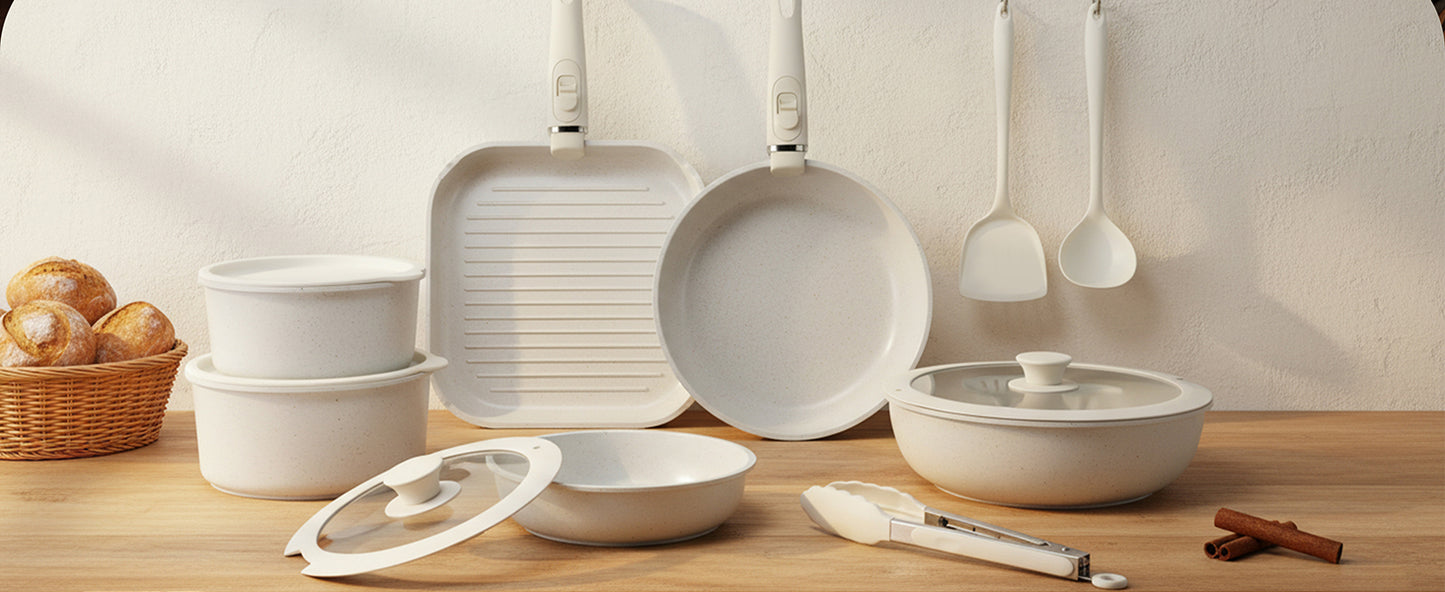 Non-Stick Excellence: The granite cookware set ensures effortless cooking and cleaning; With minimal oil, food slides off easily, promoting a healthy diet;Free of PFOA, Pb, and Cd, its stain-resistant surface offers durable performance