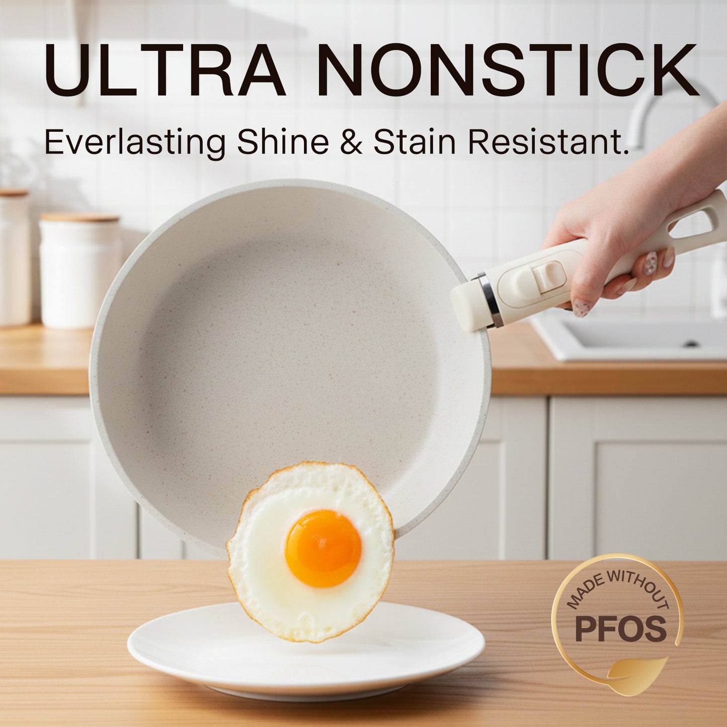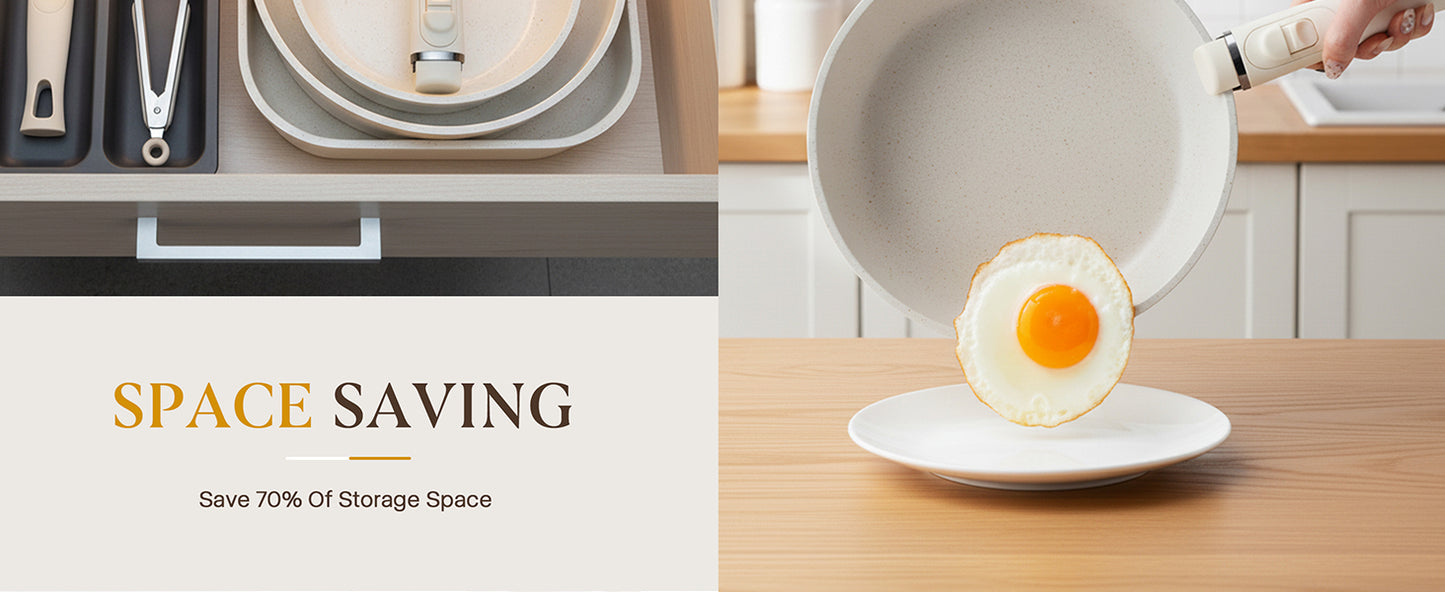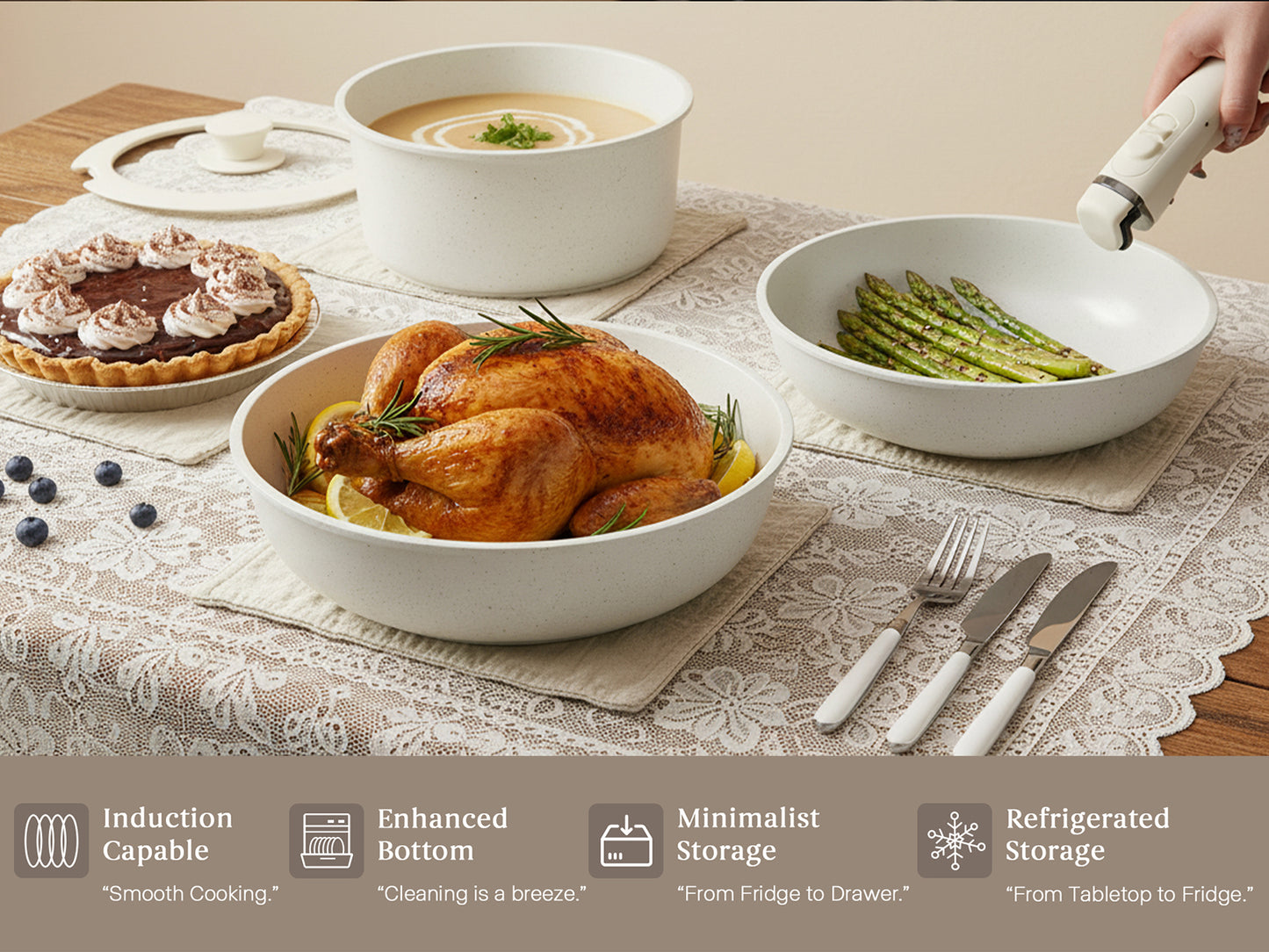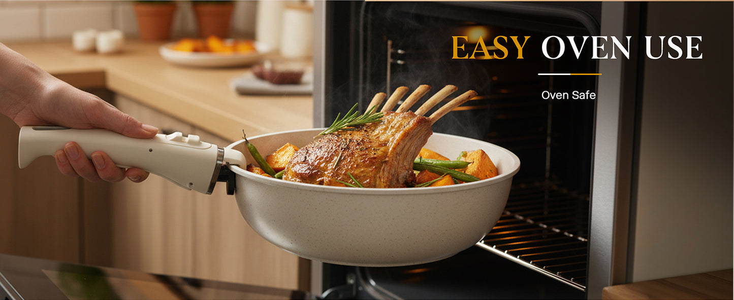 Detachable handle cookware: Useluck detachable handle pots and pans feature a double-lock for safety;Remove the handle to prevent overheating;Our removable handle pots and pans switch easily between stove, oven, grill, fridge, and table