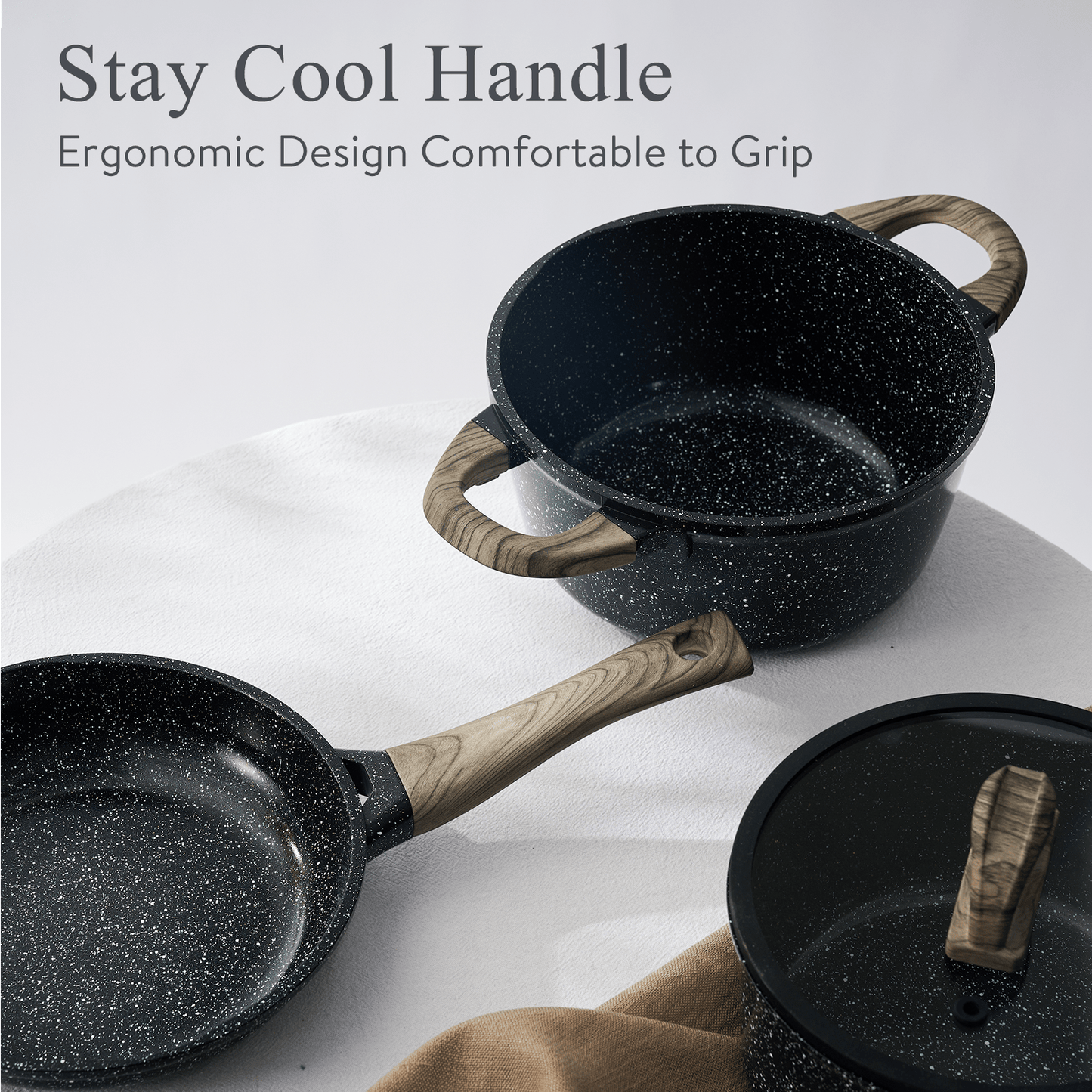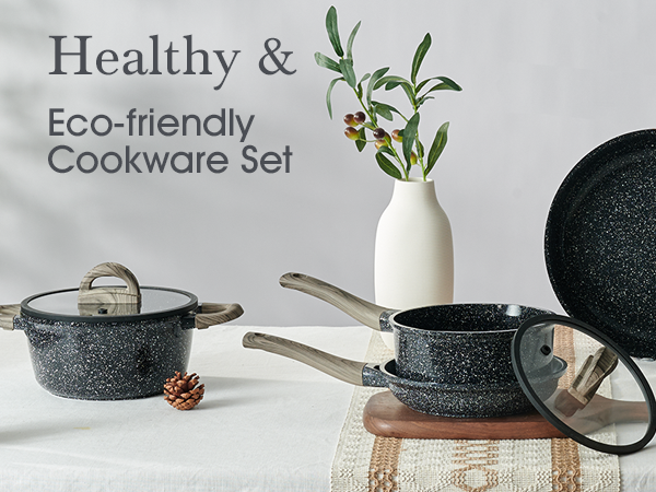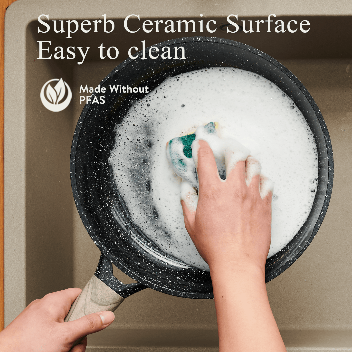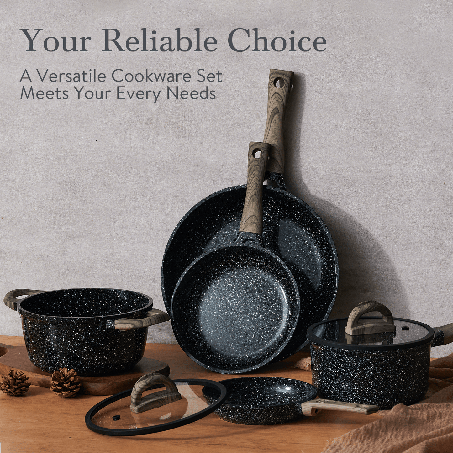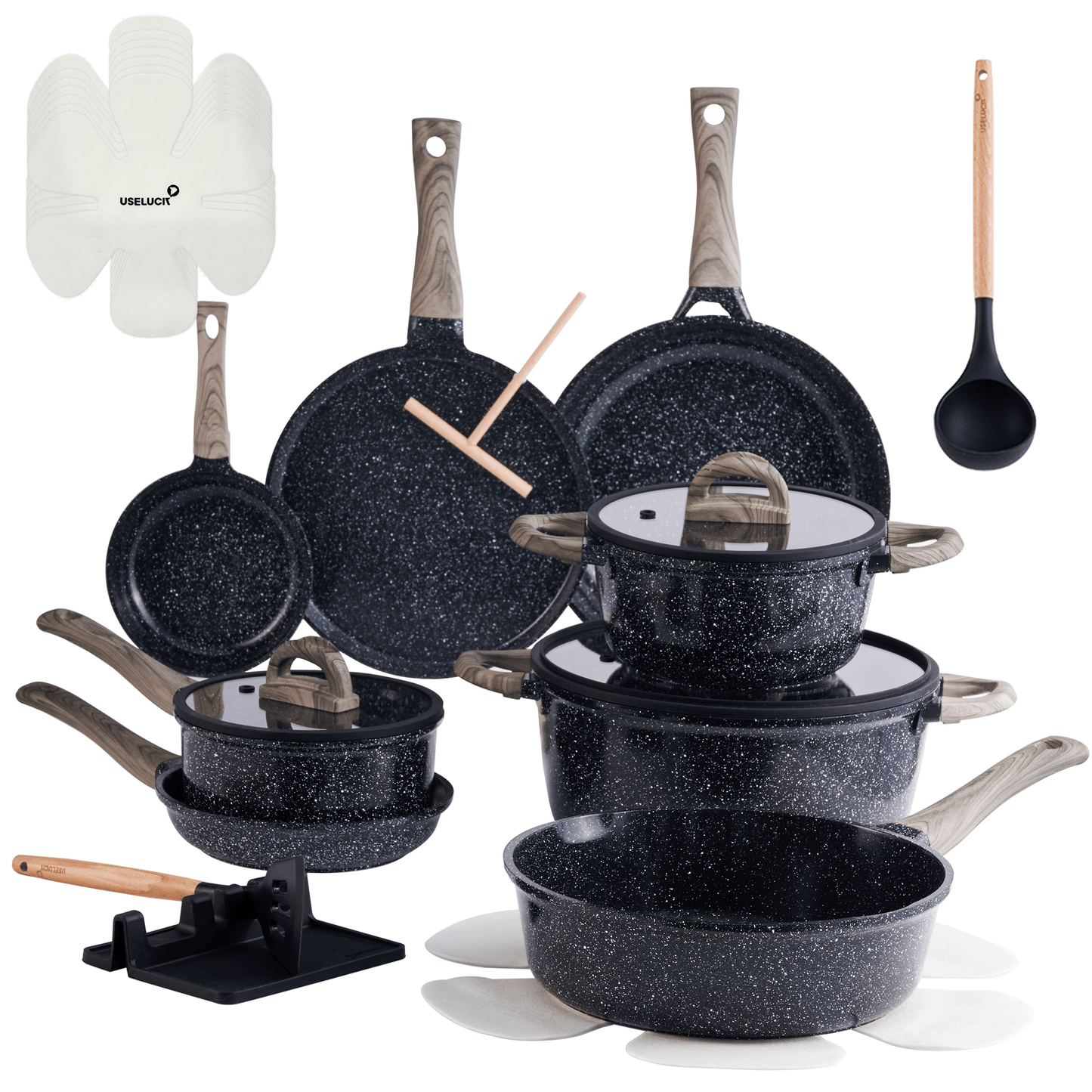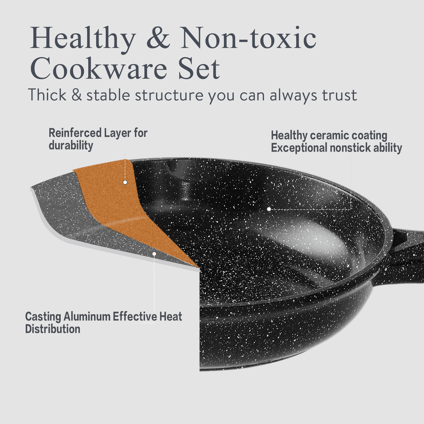 Ceramic Cookware Set 22 Piece Nonstick Pots and Pans Set Non Stick Kitchen Cooking Sets 8"Frying Pans with Lid,Black Granite Non-Toxic Induction Kitchen Cookware w/Glass Lids PFOS/PFOA-Free