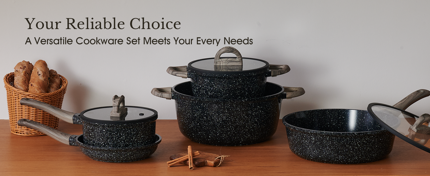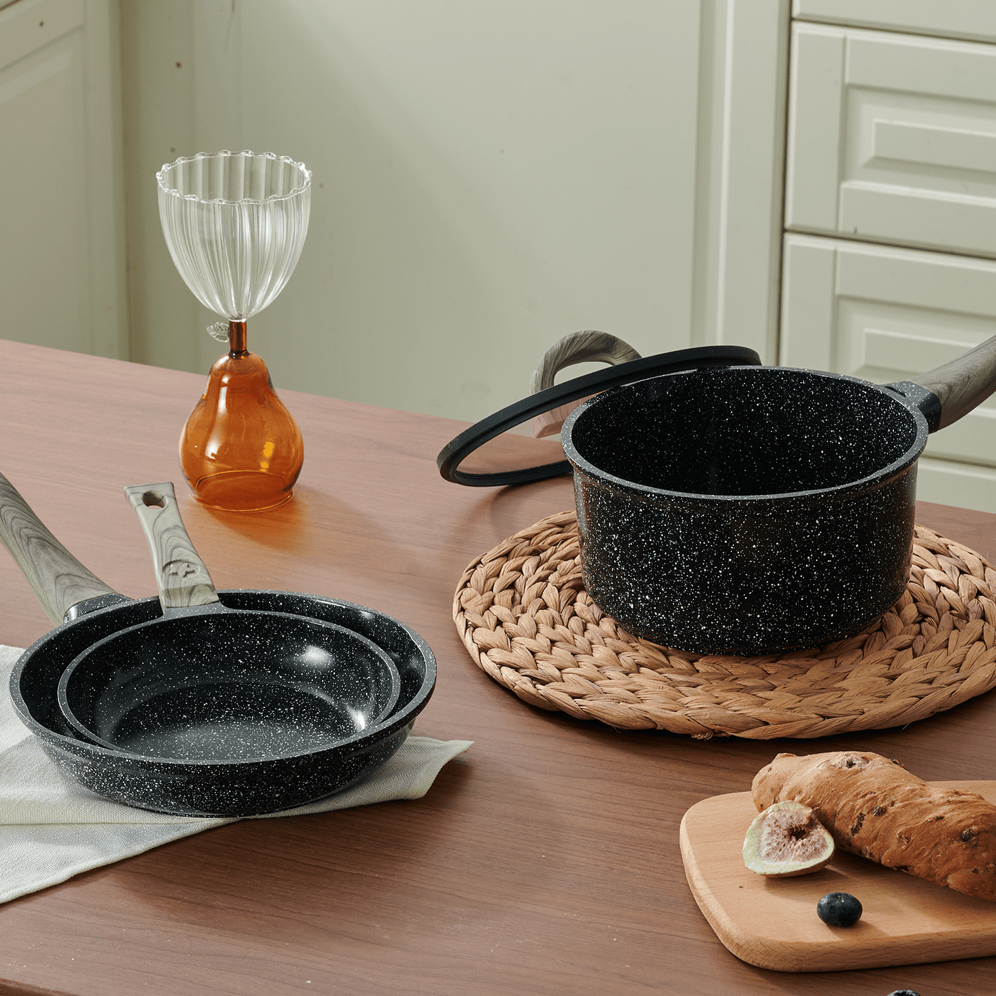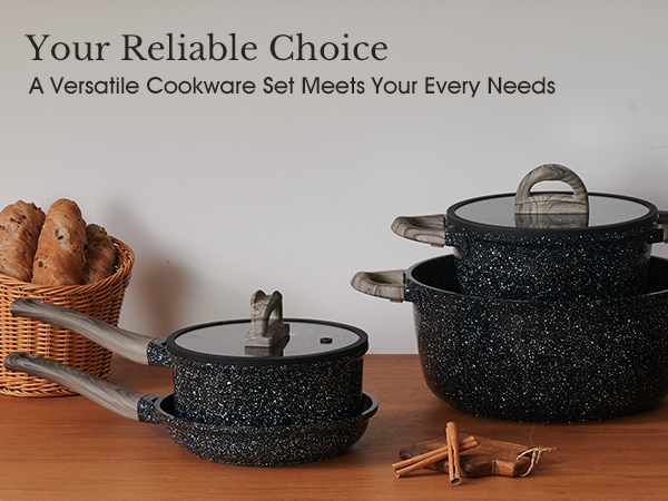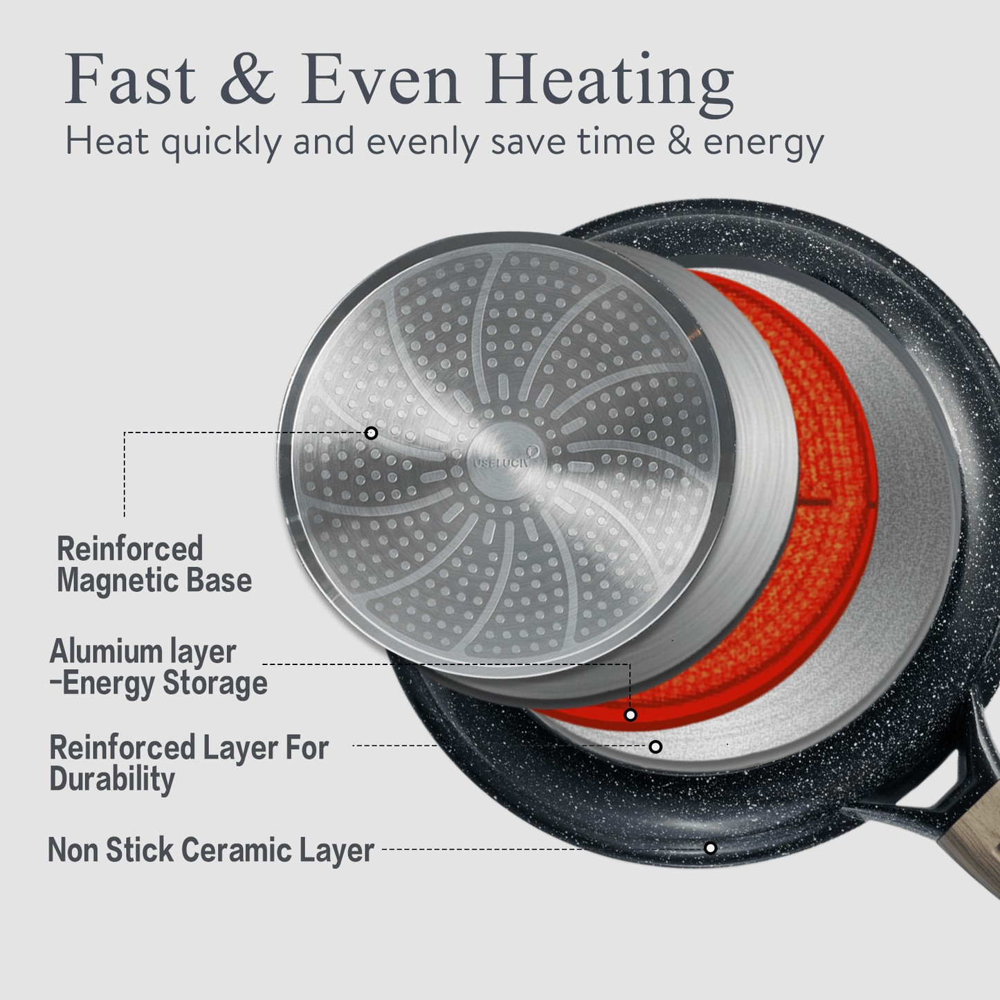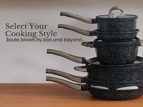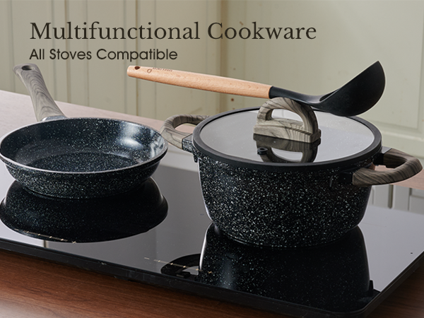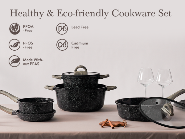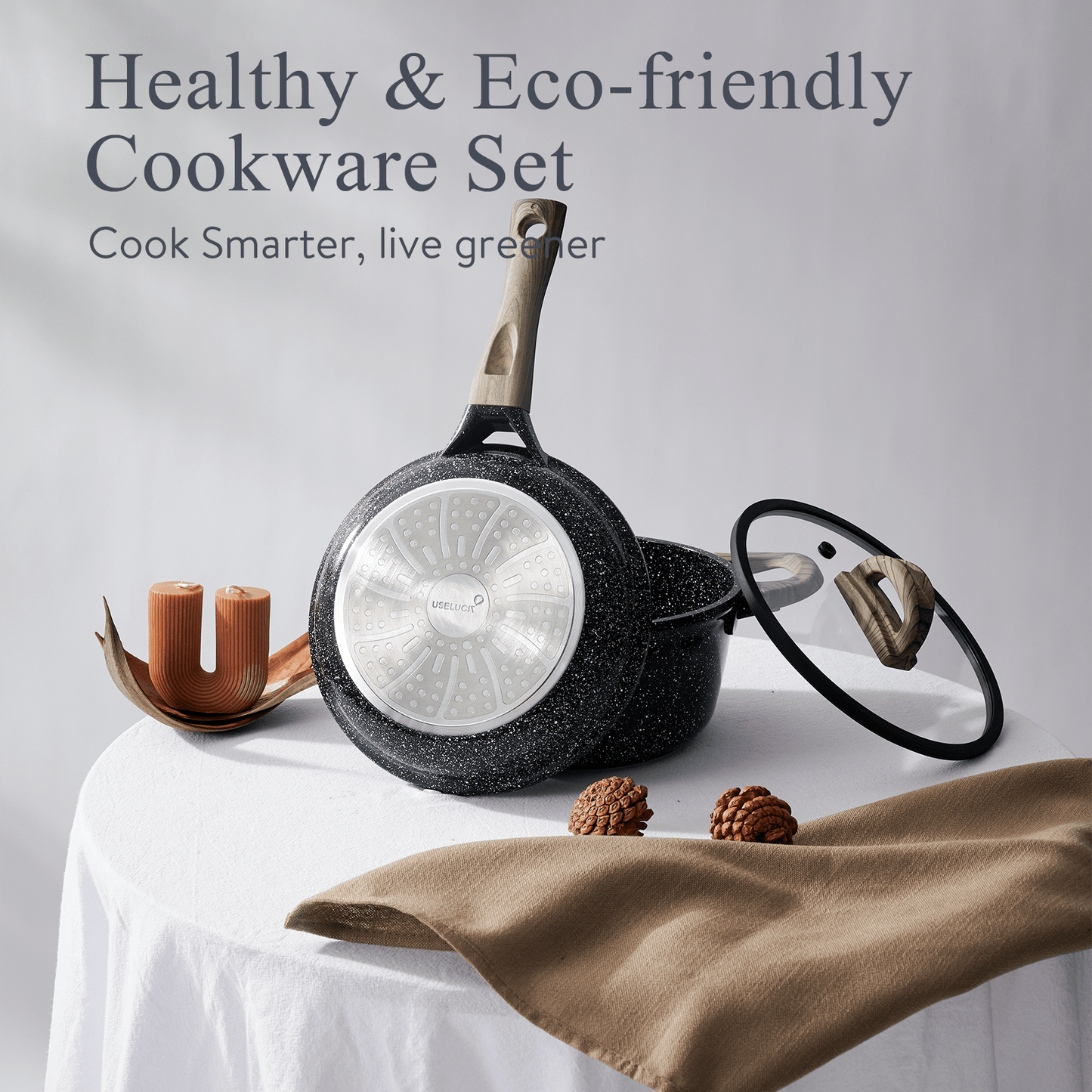 Ceramic Cookware Set 22 Piece Nonstick Pots and Pans Set Non Stick Kitchen Cooking Sets 8"Frying Pans with Lid,Black Granite Non-Toxic Induction Kitchen Cookware w/Glass Lids PFOS/PFOA-Free