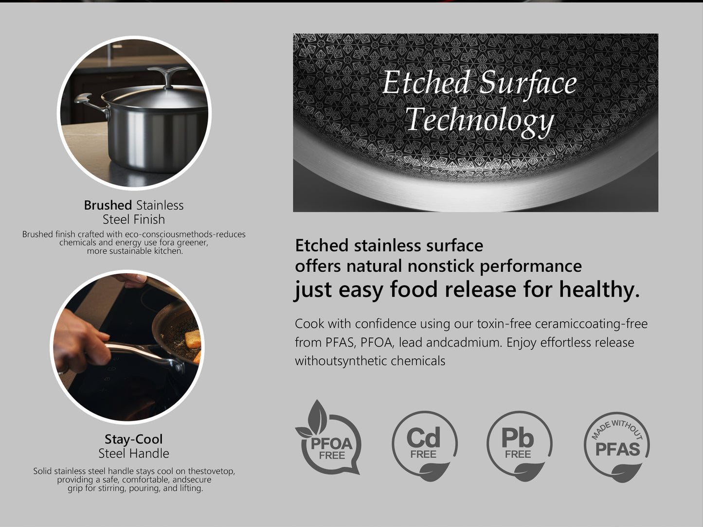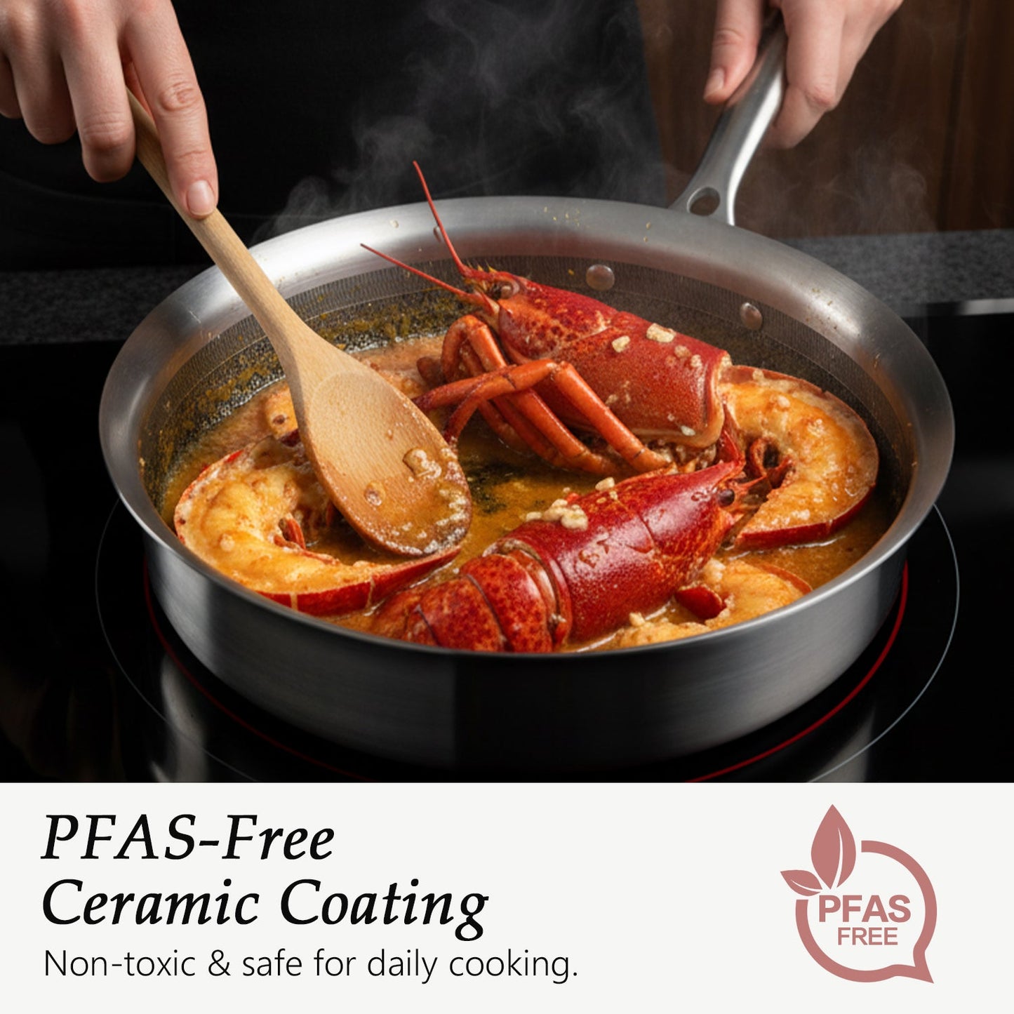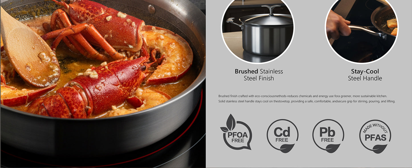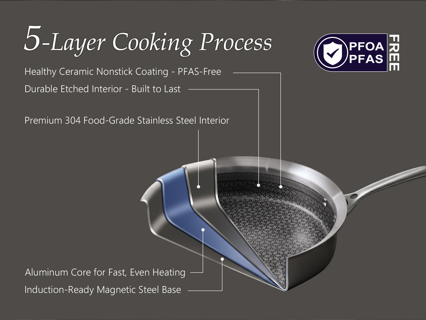 5-Ply Clad Stainless Steel | Induction Compatible | Oven & Dishwasher Safe | PTFE/PFOA Free | Non-Toxic