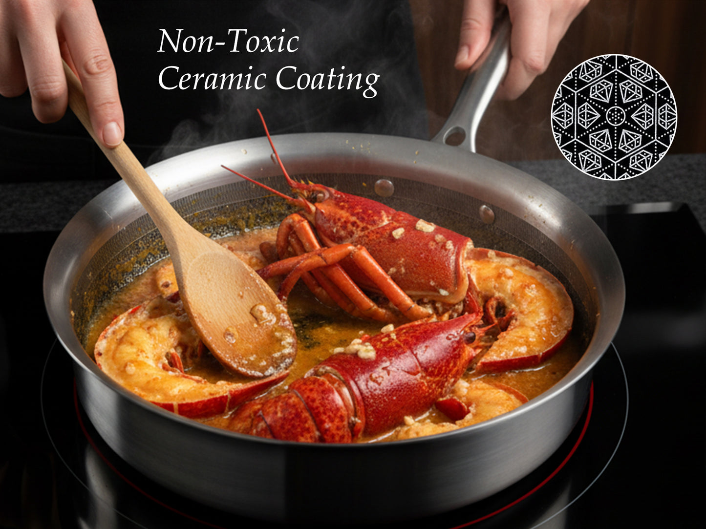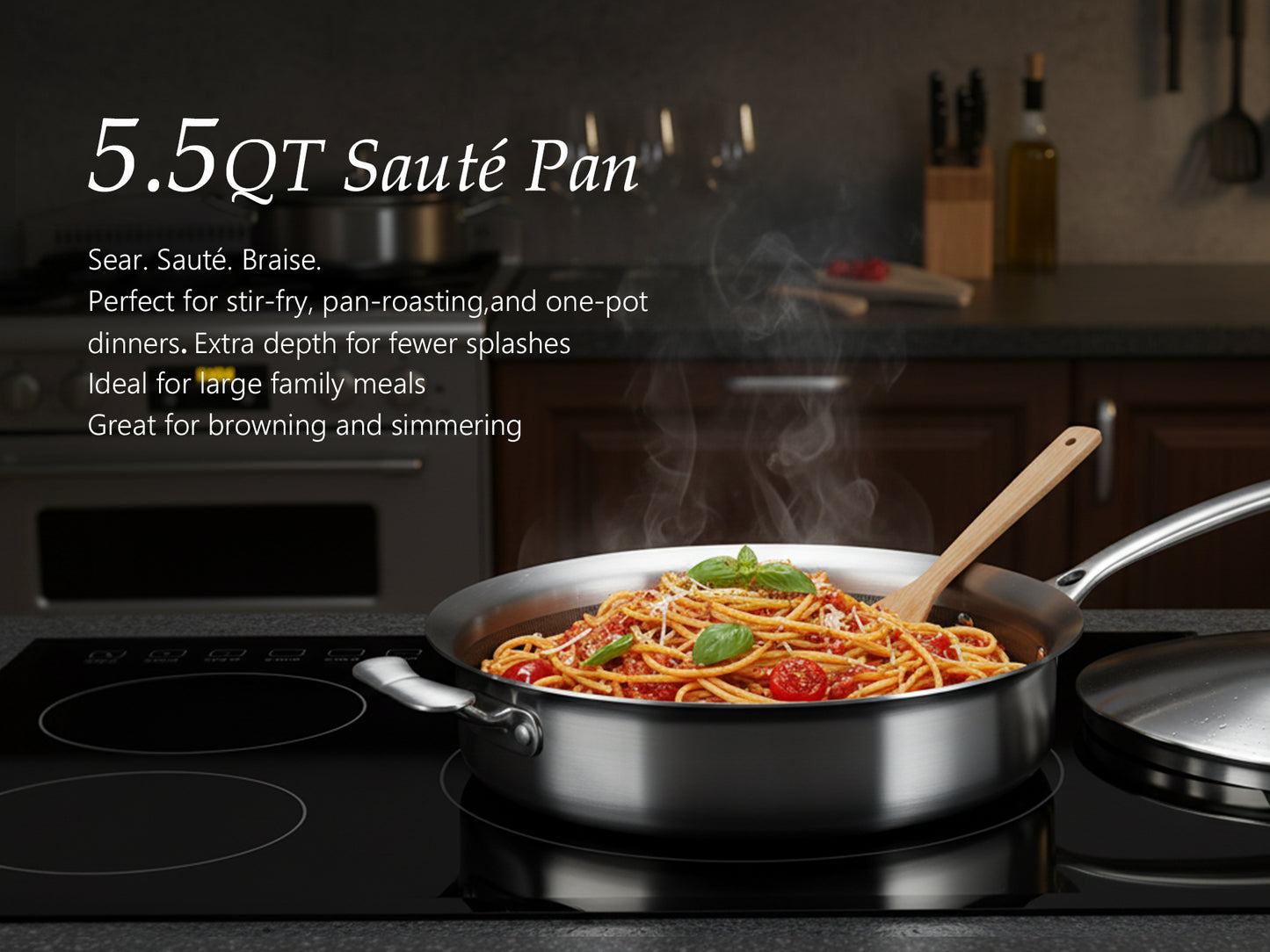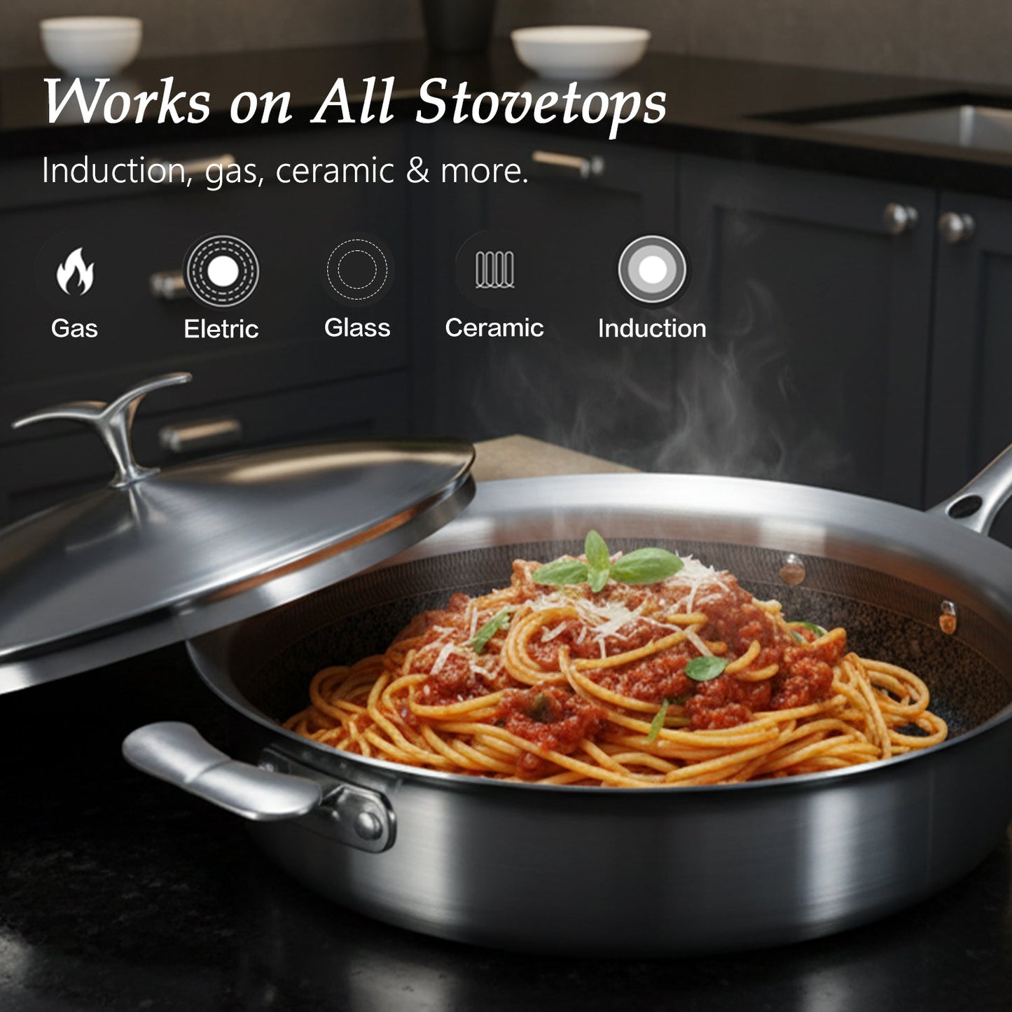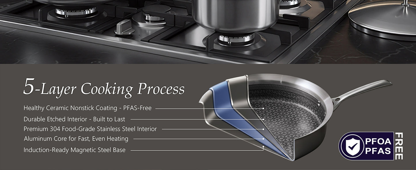 5-Ply Clad Stainless Steel | Induction Compatible | Oven & Dishwasher Safe | PTFE/PFOA Free | Non-Toxic
