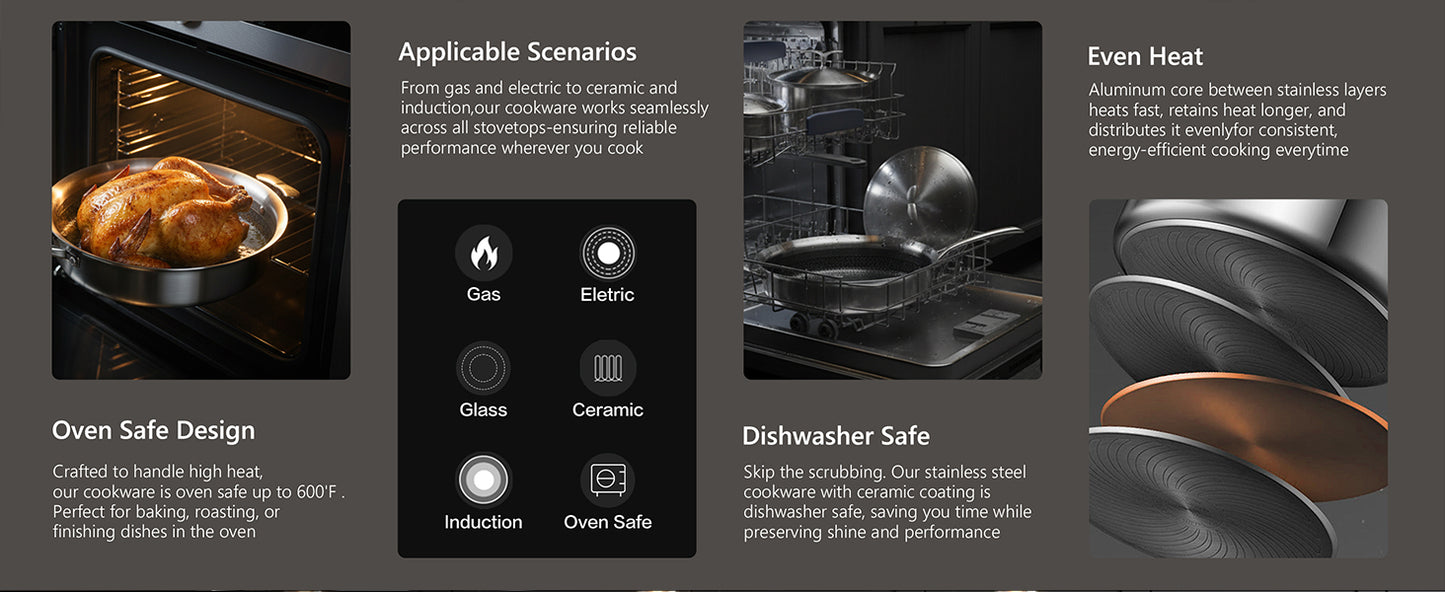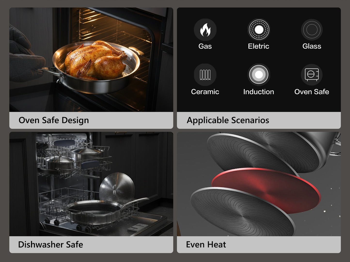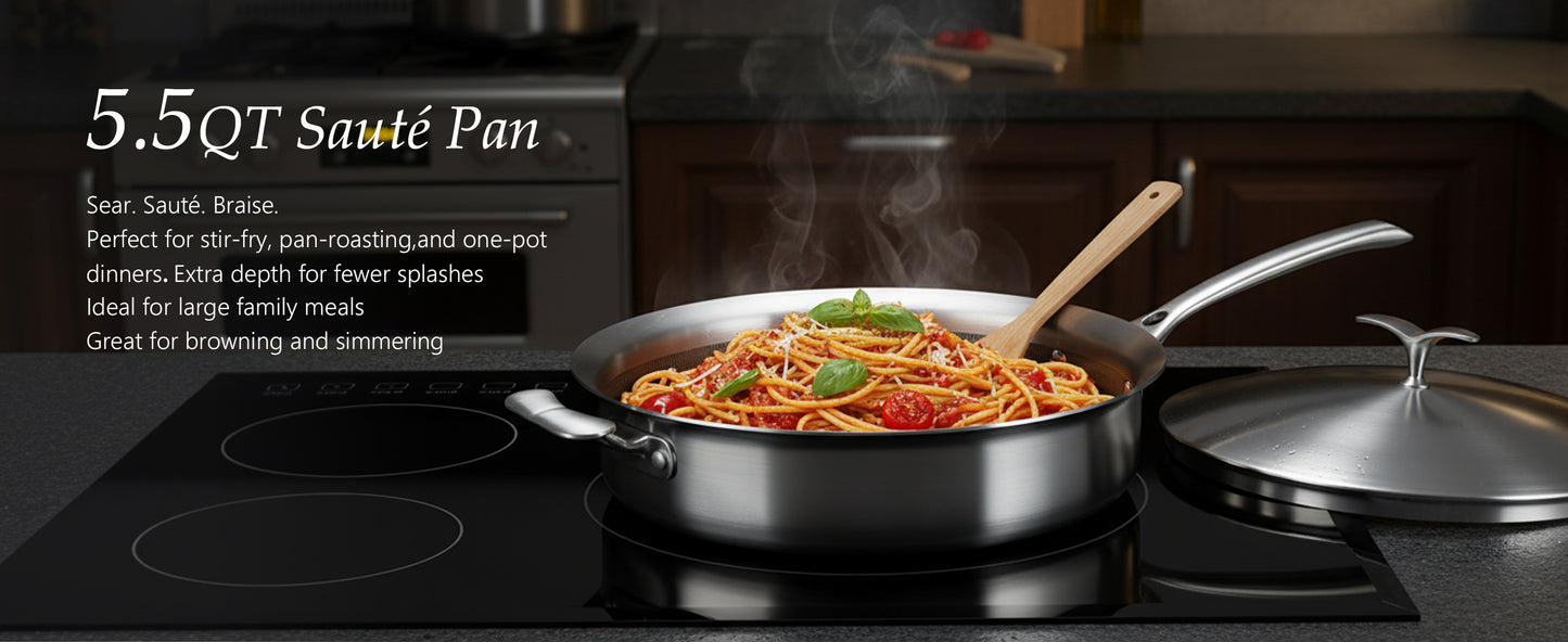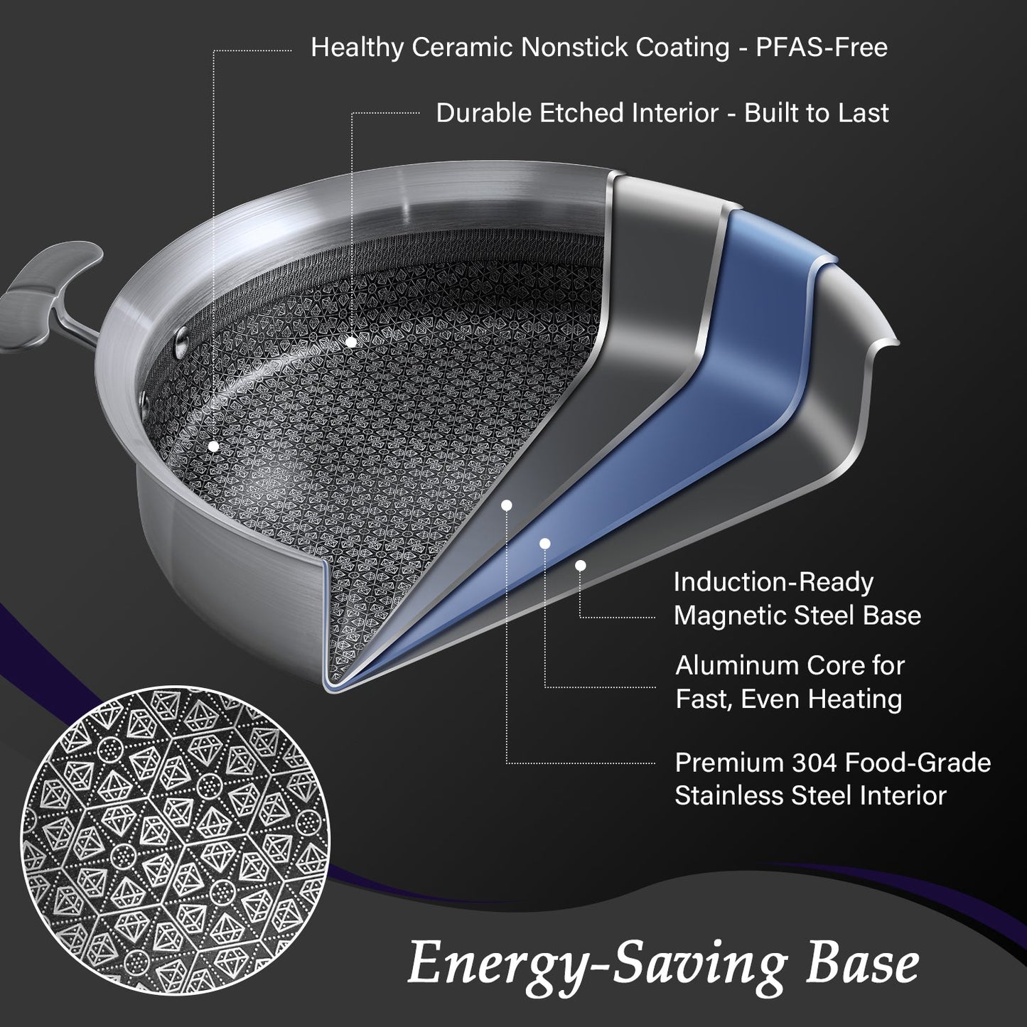 5-Ply Clad Stainless Steel | Induction Compatible | Oven & Dishwasher Safe | PTFE/PFOA Free | Non-Toxic