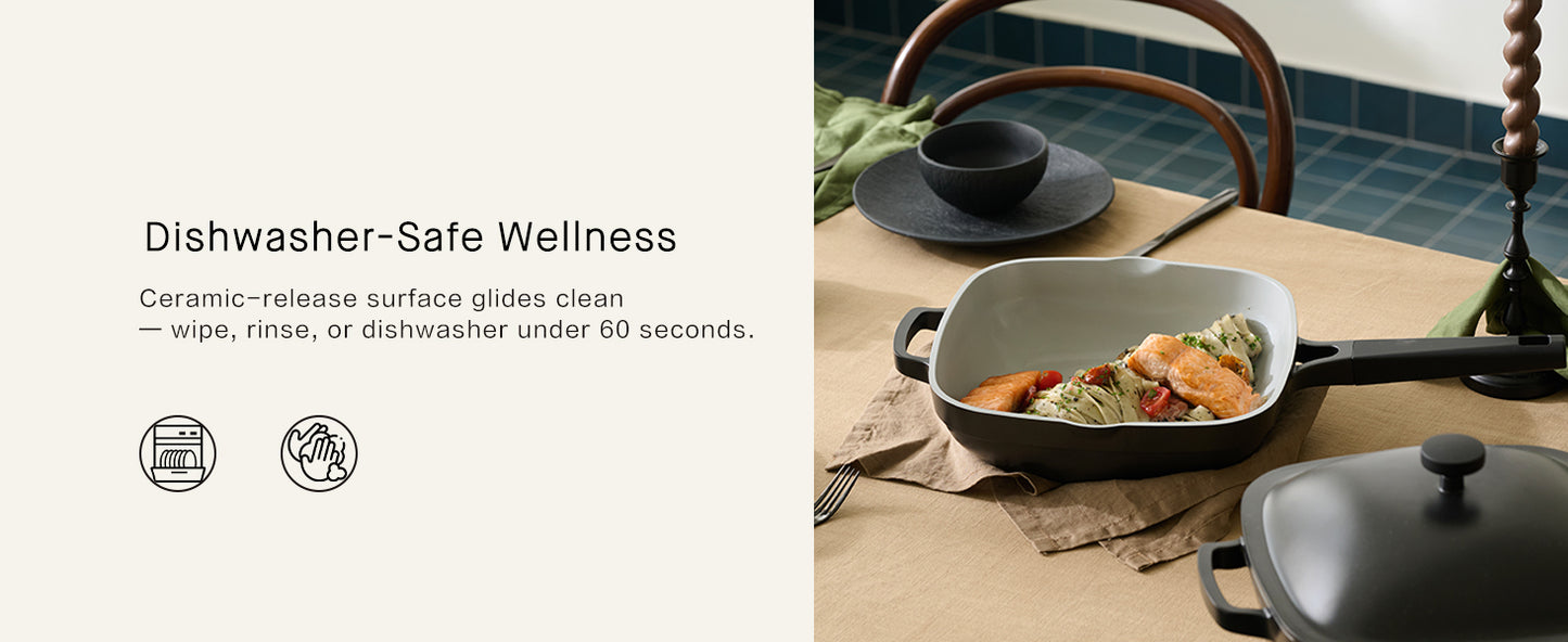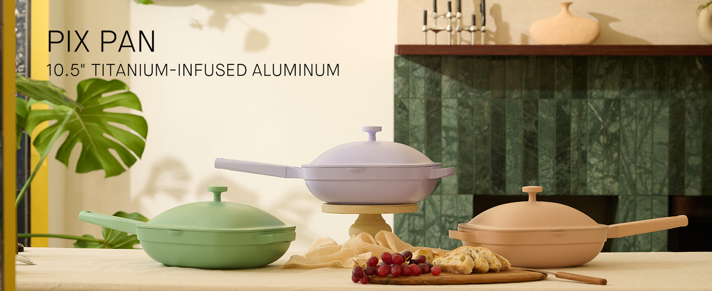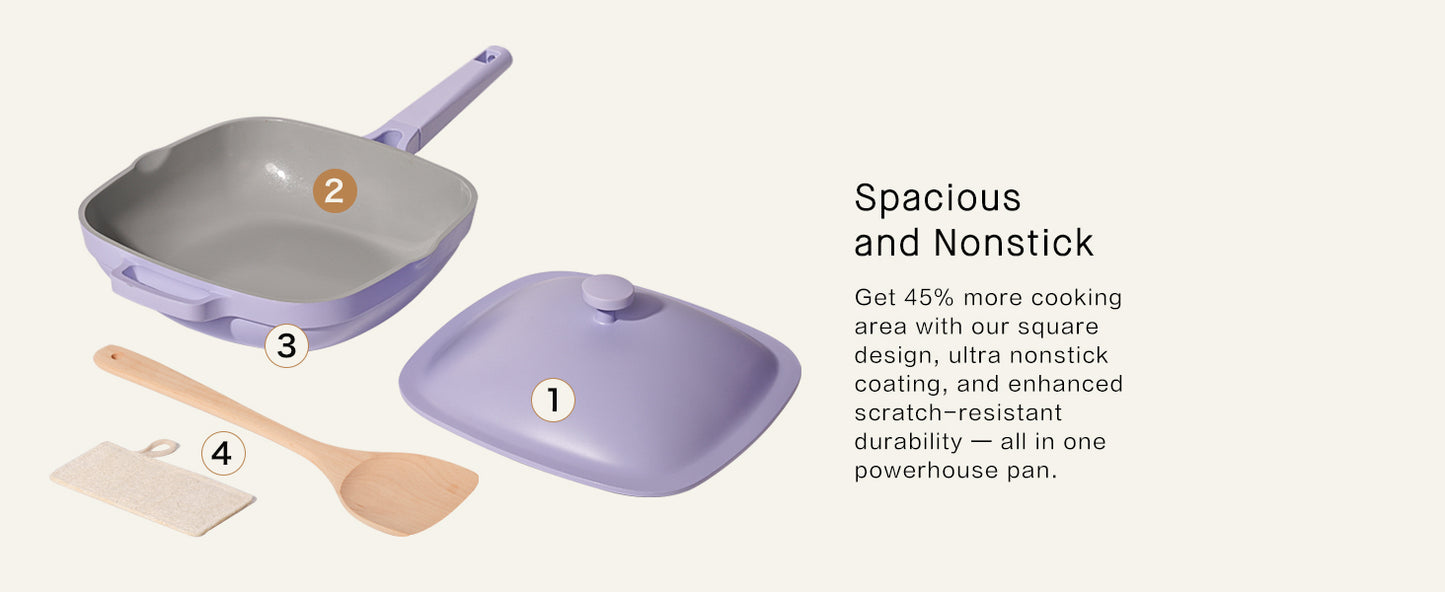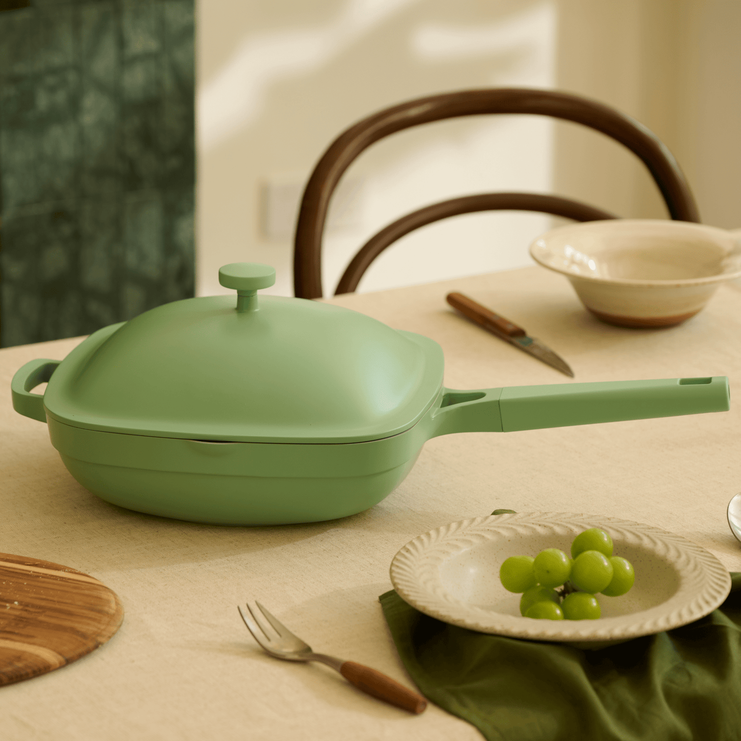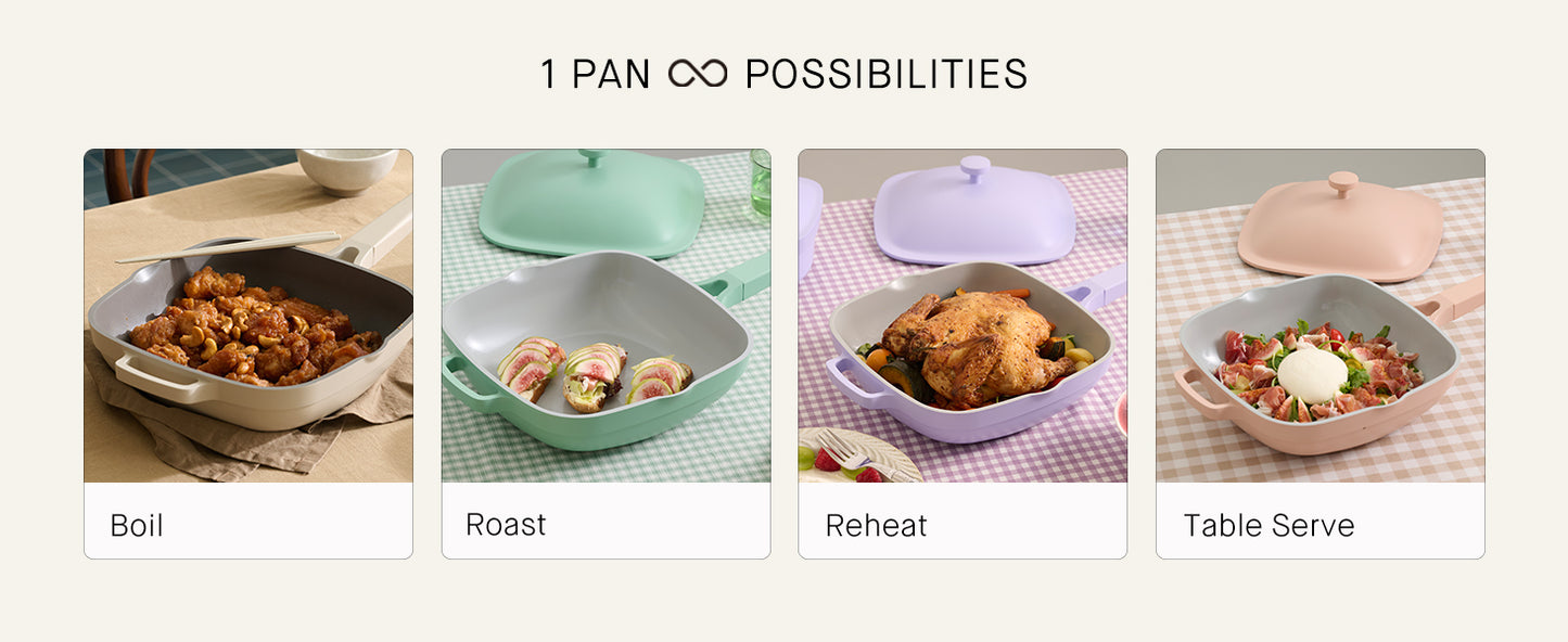 Our Pix square pan offers 35–45% more cooking surface than standard round pans, letting you sear, sauté, braise, stir-fry, and more — all in one versatile piece. Replacing your frying pan, saucepan, wok, braiser, sauté pan, nonstick pan, and even stock pot, it’s perfect for cooking multiple portions without overcrowding. Ideal for families, meal prep, and anyone who loves efficiency in the kitchen.