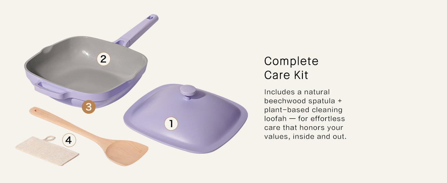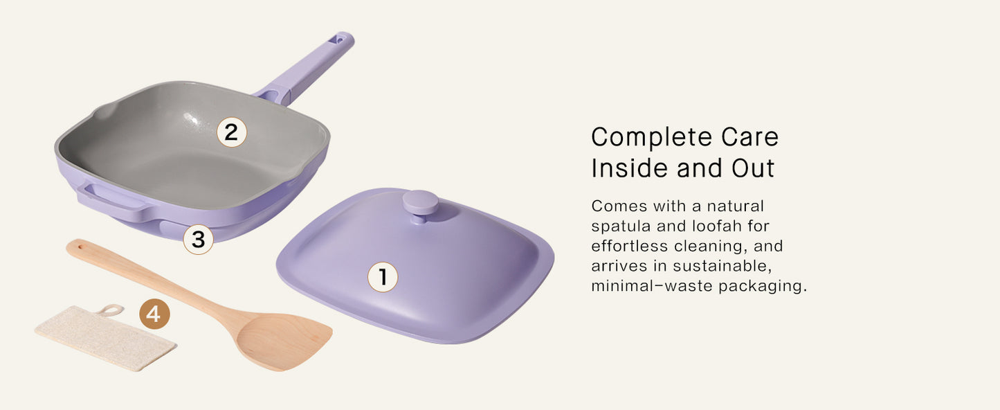 From cooking to cleaning, every detail is designed for ease. Each set includes a natural wooden spatula and loofah scrubber — gentle on your cookware yet tough on mess — all thoughtfully packaged in eco-conscious materials. And with our 12-month hassle-free warranty, you can cook with confidence from day one.